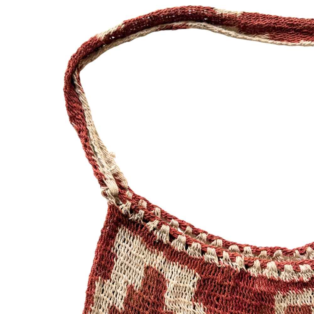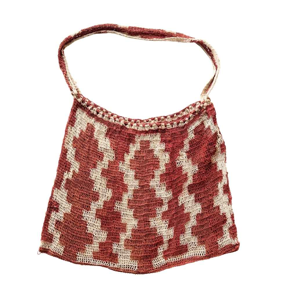 Create a style with purpose and depth and accessorise with a piece of functional art. This authentic natural fibre bilum hails from the remote village of Kamanimbit in Papua New Guinea and supports women weavers earn a living from their traditional knowledge and skills.