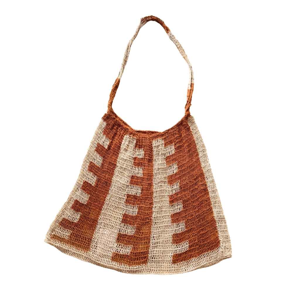 Create a style with purpose and depth and accessorise with a piece of functional art. This authentic natural fibre bilum hails from the remote village of Kamanimbit in Papua New Guinea and supports women weavers earn a living from their traditional knowledge and skills.